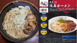 濃い味のラーメンの上に生卵を落として食べるのが定番で、そんな個性的な徳島ラーメンの味が完全に再現されています。