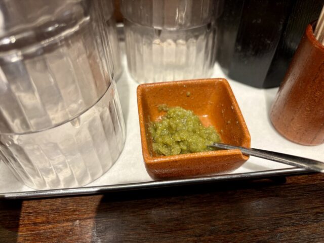 卓上の柚子胡椒のアクセントも、この濃度の高くなった一杯によく合います。