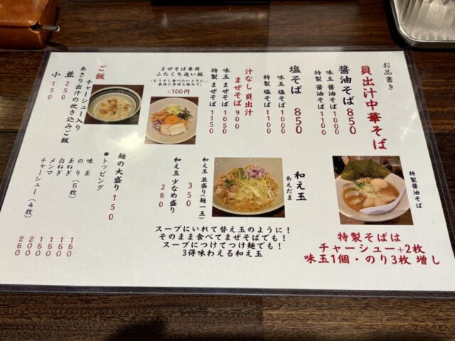 公式Twitterで初めて訪れる方は「濃厚あさり中華そば」がオススメと書かれていますが、2026年2月時点ではは販売されていませんでした。