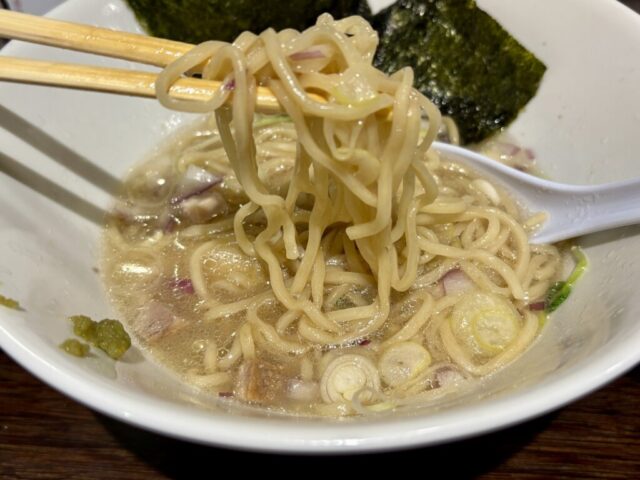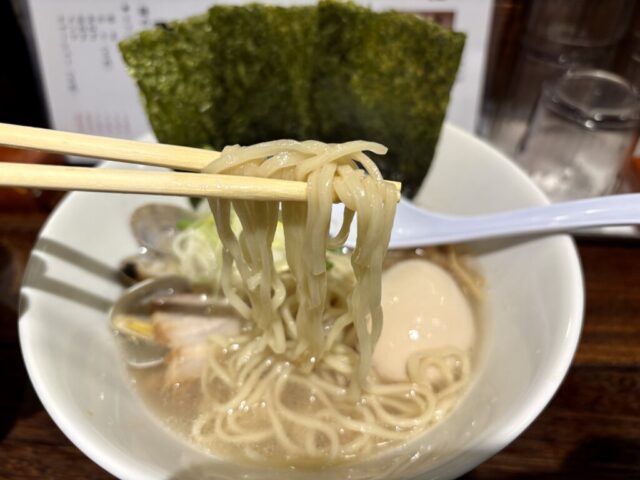 最初に貝の香りがダイレクトに伝わってきて、味自体は控えめなので麺の小麦の香りや美味しさが感じられます。