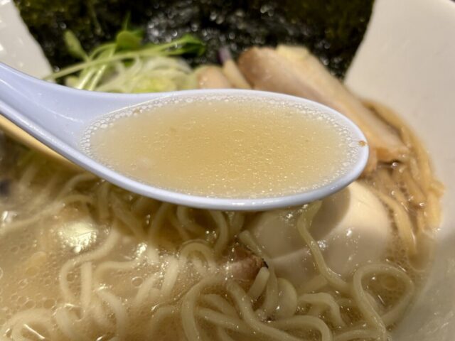 スープをひと口すすると、まず貝出汁の旨味が舌の上に広がる!