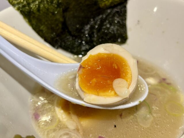 味玉・・・黄身はほどよい硬さで黄身の香りが濃く、出汁の旨味もほんのり効いてて美味しい。