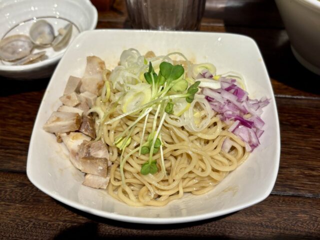 麺自体に味が付いていることもあって、食べ進めるほどに貝の旨味がどんどん濃くなっていくように感じました。