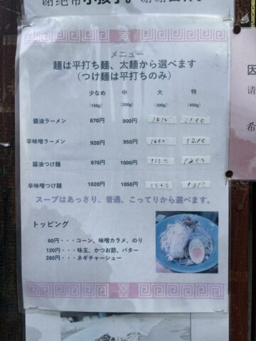 | 営業時間 | 11:30〜13:30頃 17:30~20:00頃 ※昼・夜ともスープ売り切れ次第終了 早仕舞いすることが多いので、来店時は必ず確認してください |