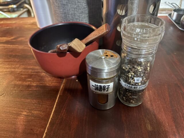 卓上調味料は一味唐辛子とブラックペッパーが置いてありました。