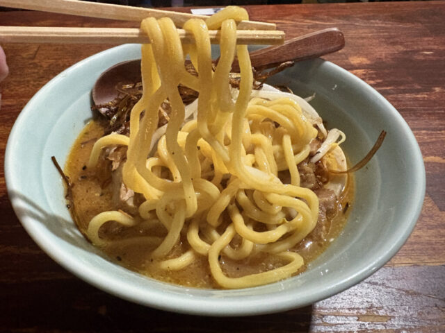 コシはそこまで強くないので、麺量が多くても顎が疲れることは無さそうかな?